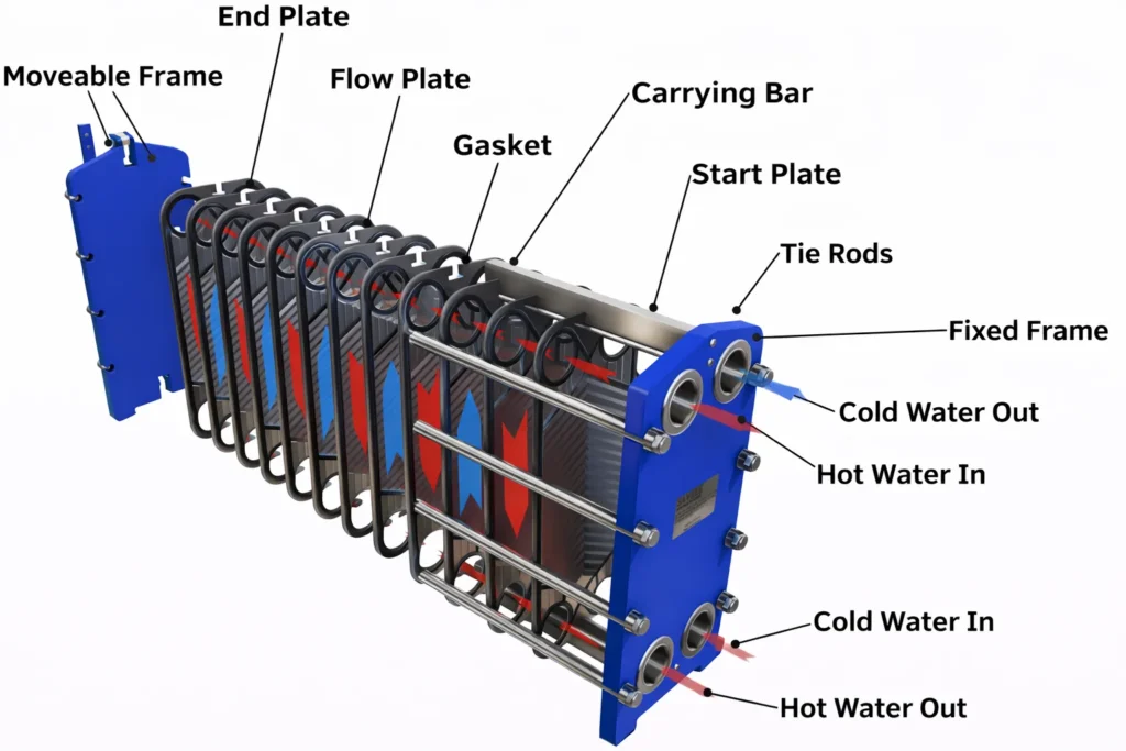 - Efficient heat transfer through optimized plate geometry